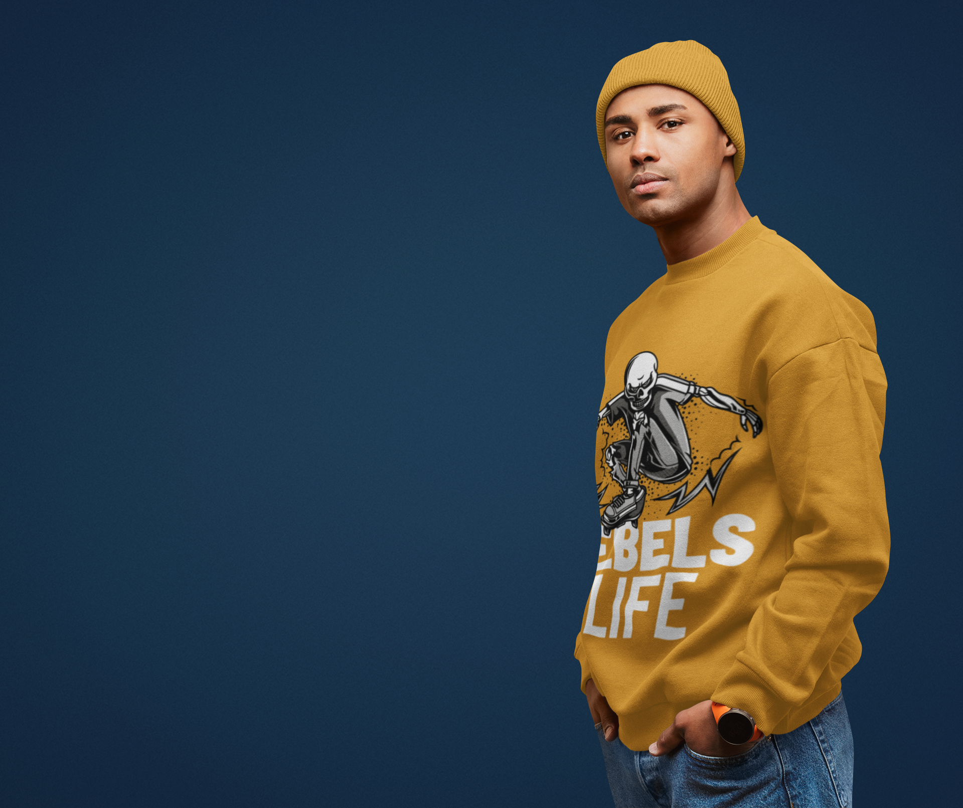 Discover the Rebels Life Mustard Yellow Sweatshirts , the perfect solution for street wear fashion at KNITT.